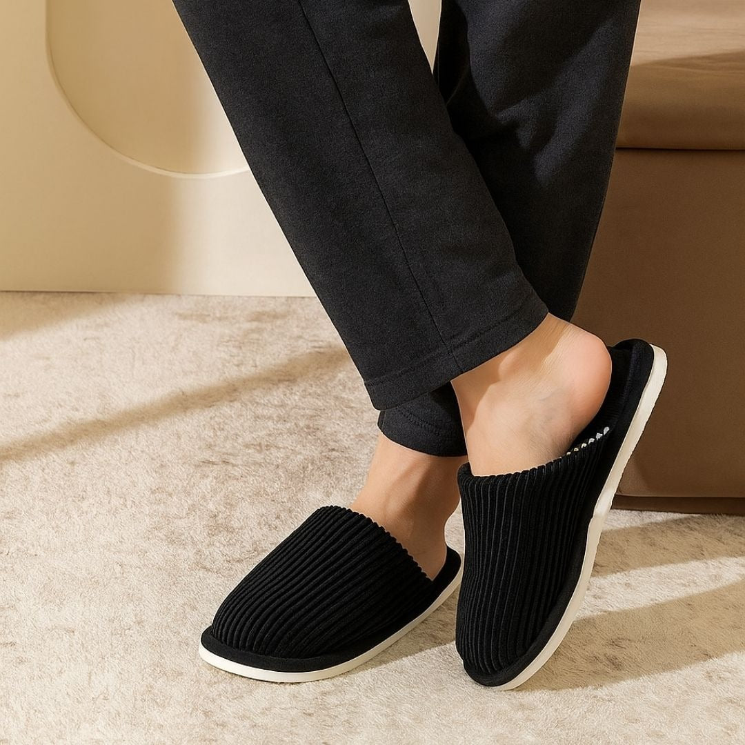 Durabilité exceptionnelle : Contrairement aux pantoufles classiques, les coutures renforcées et les matériaux haute densité garantissent une tenue parfaite dans le temps — ni effilochage, ni affaissement.